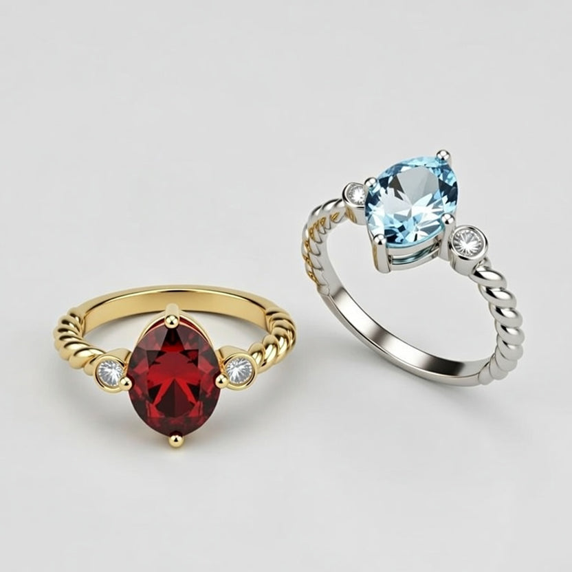 Te presentamos varias opciones que se ajustan a tus gustos: tipo y color del metal, forma y tamaño de las piedras, estilo de engaste y acabados.
