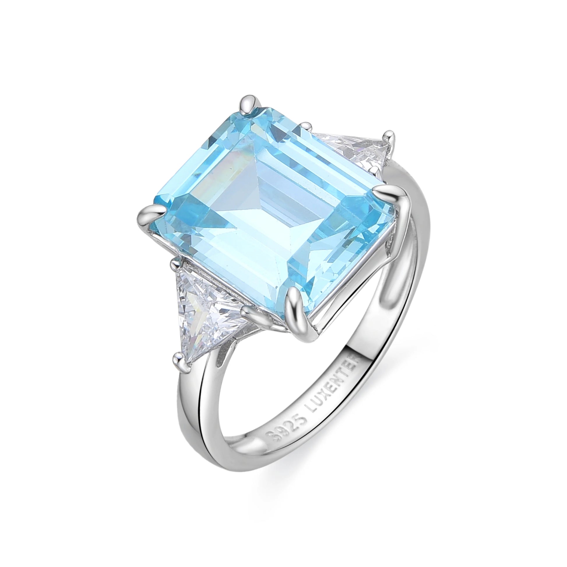 Anillo de Plata de Ley 925 y Circonita Aguamarina acabado rodio - Xifa