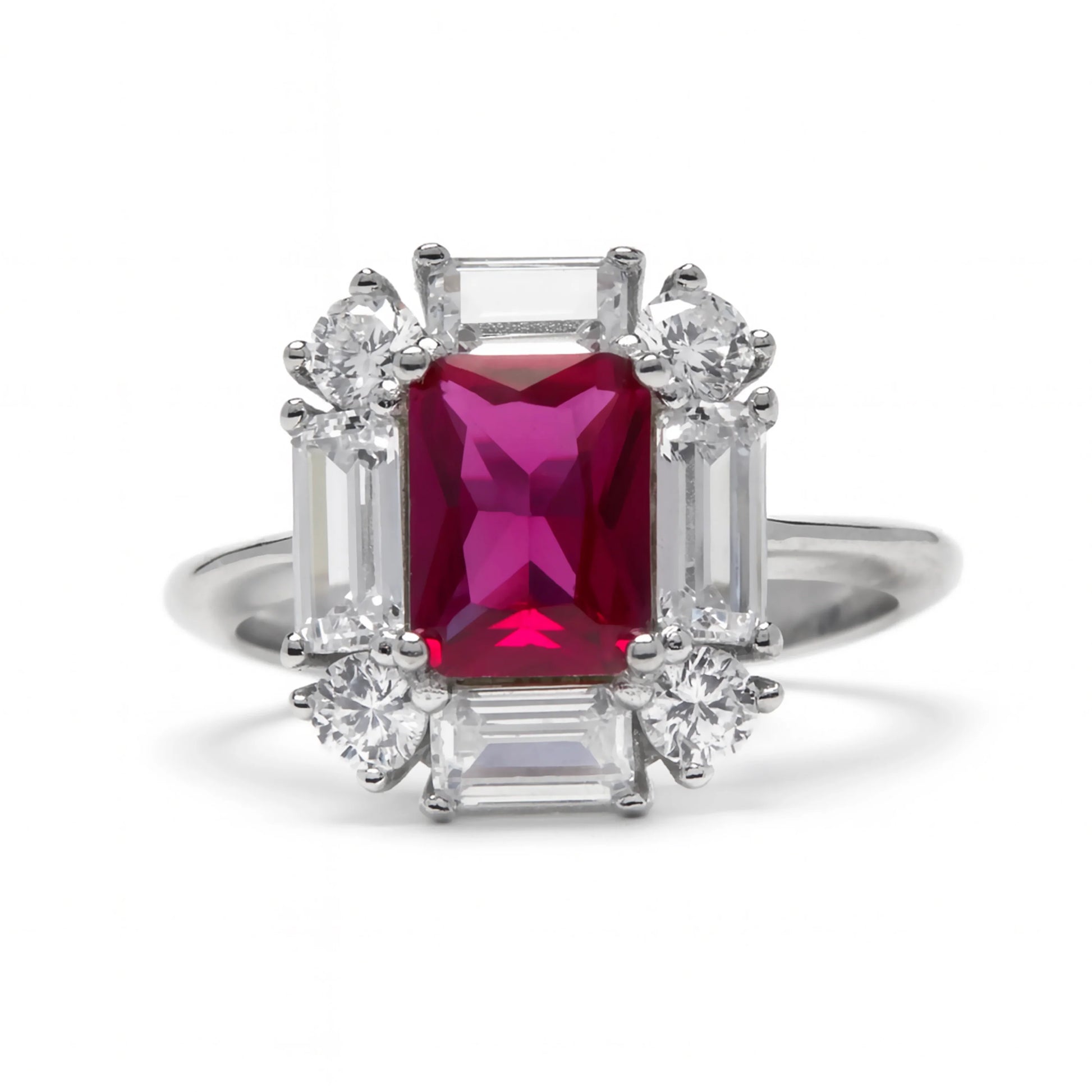 Anillo de Plata de Ley 925 y Circonita Rubí acabado en rodio - Arul