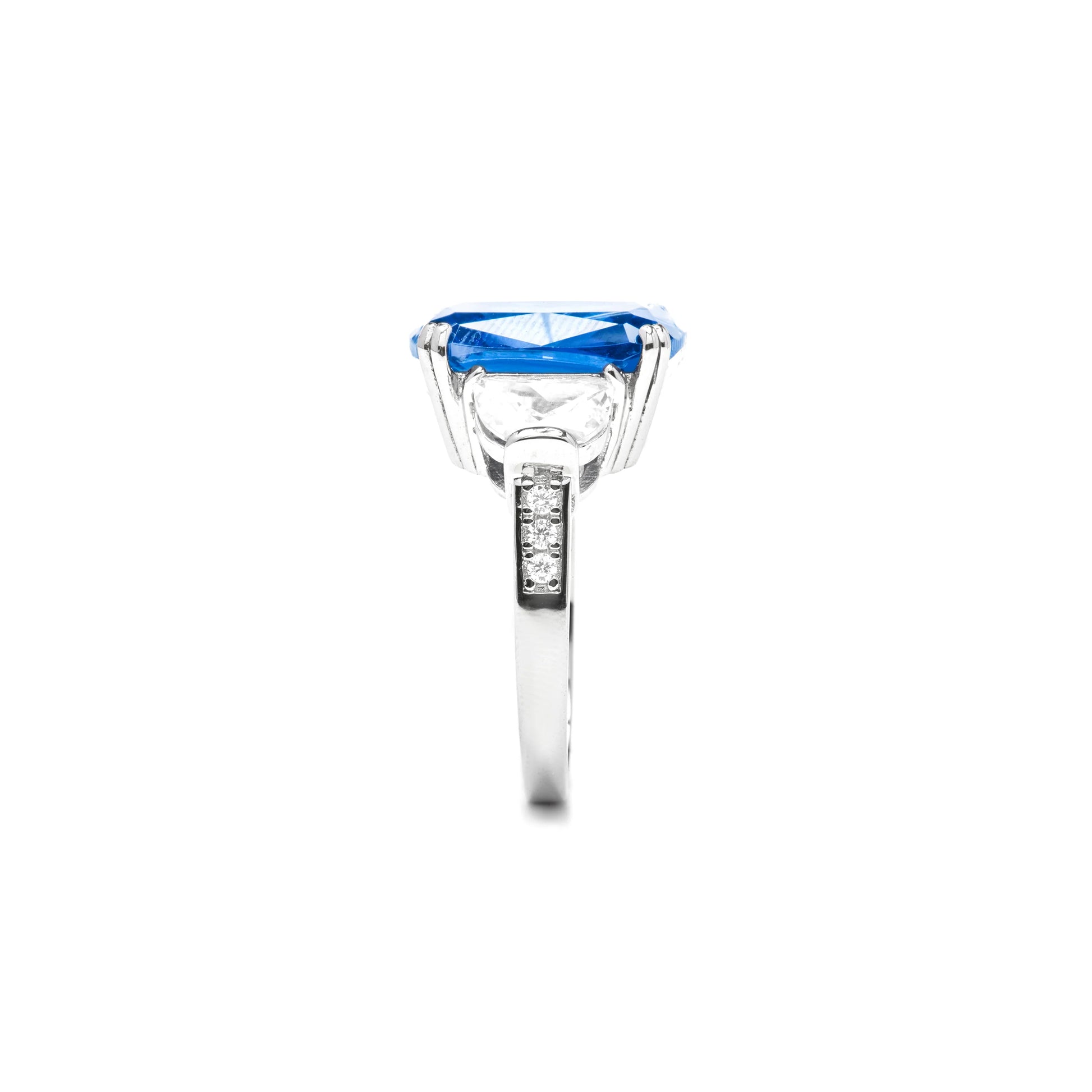 Anillo Larax de Plata de Ley 925 y Circonita Zafiro acabado en Rodio