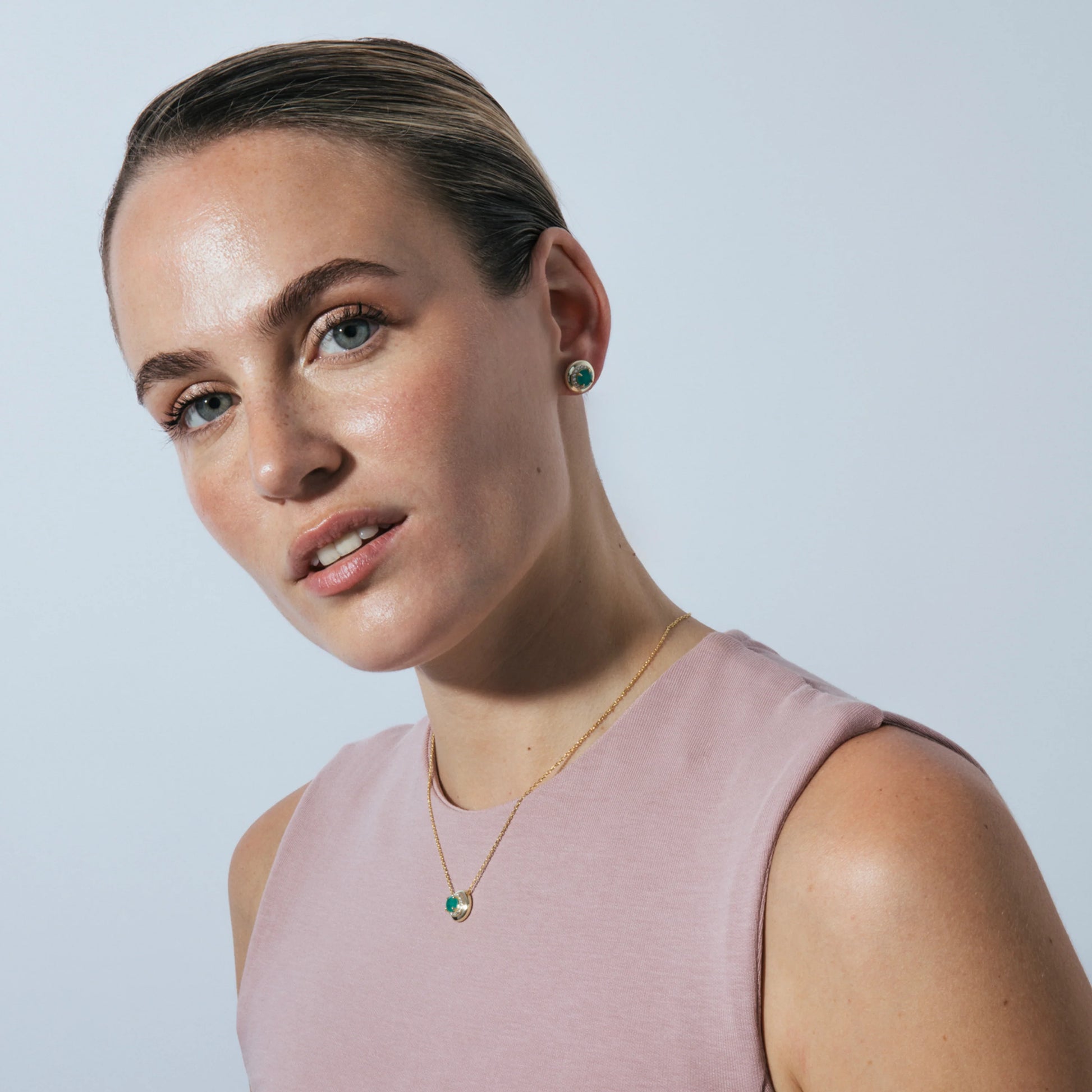 Collar de Plata de Ley 925 y Cuarzo Hidrotermal Verde Paraiba acabado en oro amarillo 18k - Lilos