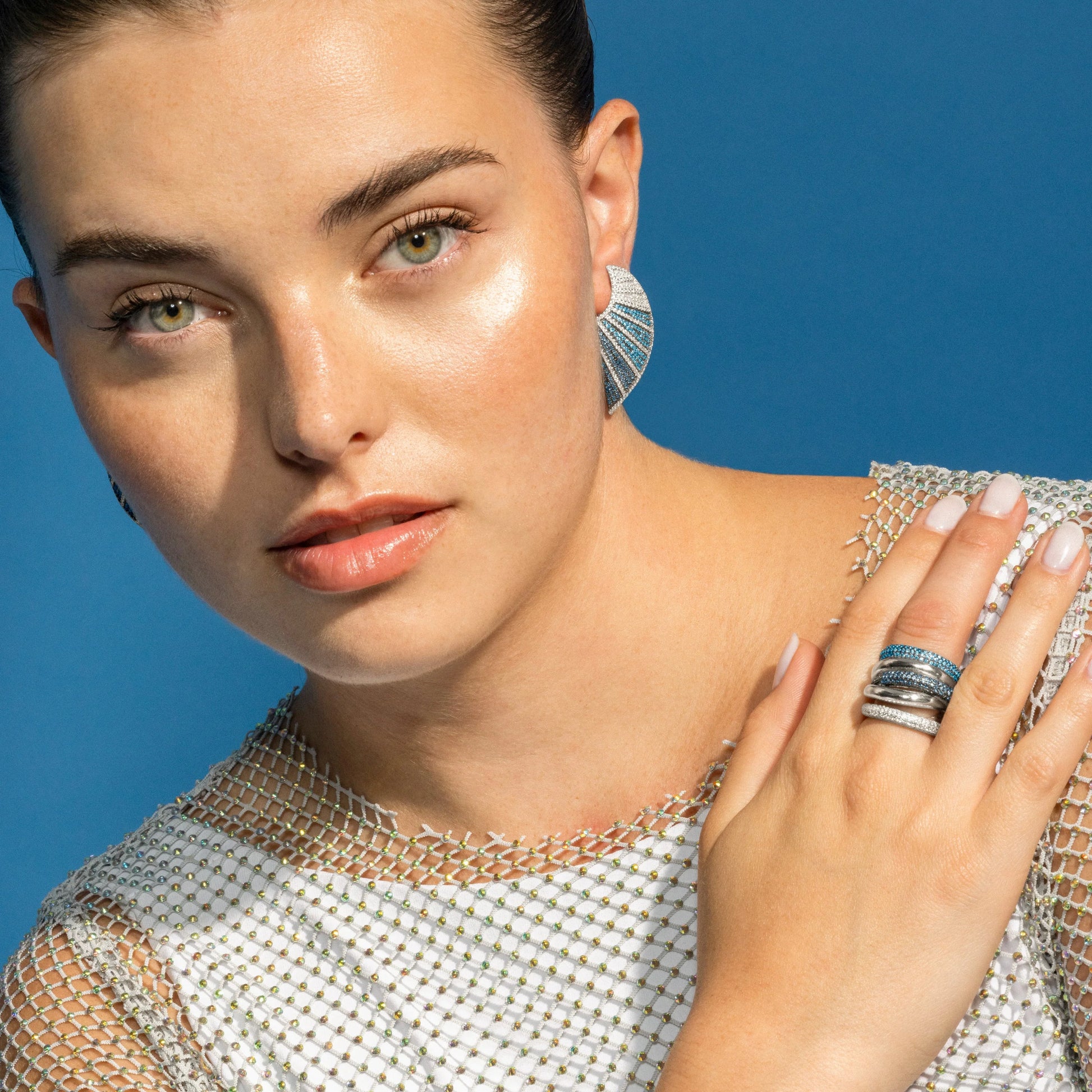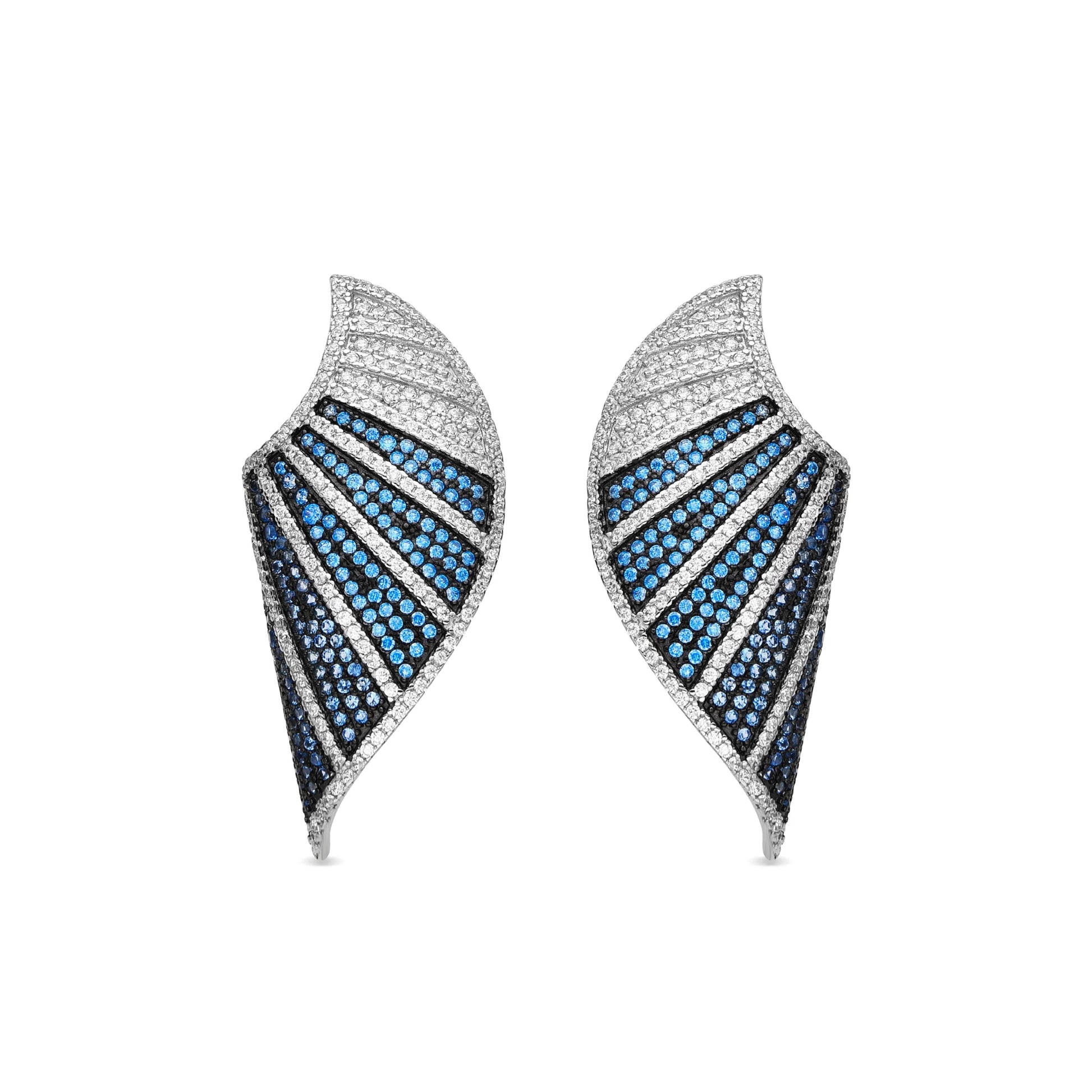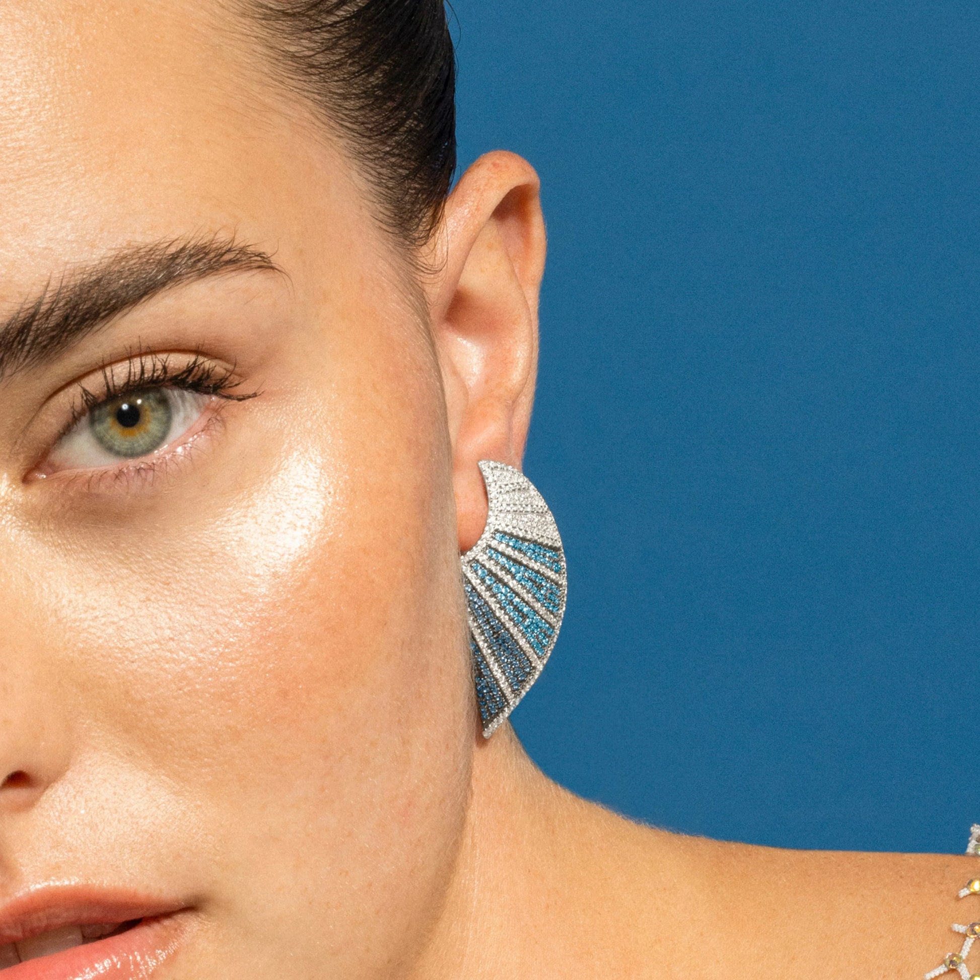 Su composición destaca por una circonita topacio azul de tonos profundos y luminosos, creando un contraste perfecto con el acabado plateado. Con 41,7 mm de largo y 19,7 mm de ancho, ofrecen una presencia destacada sin perder la armonía y la sofisticación.