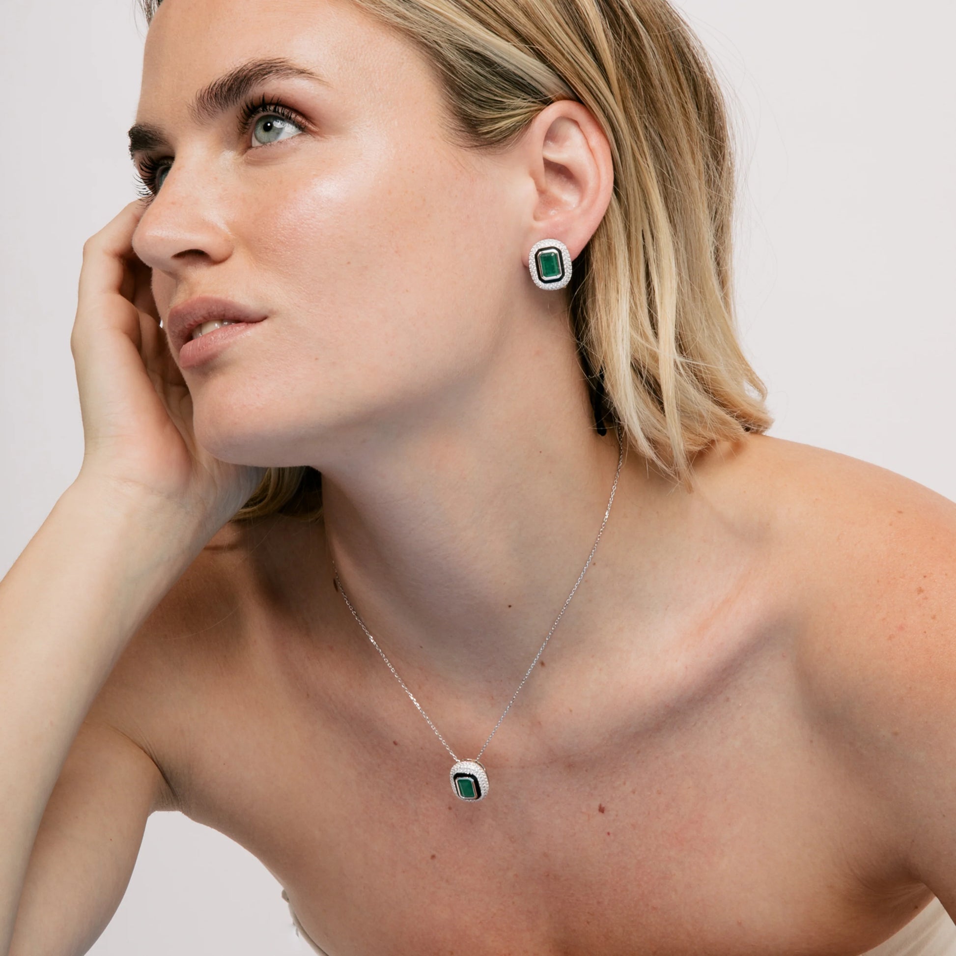 Los pendientes Ruk combinan la elegancia de la Plata de Ley 925 con la frescura del cuarzo hidrotermal verde, realzado por un sofisticado acabado en rodio. Su diseño equilibrado y luminoso aporta un toque natural y refinado, ideal para completar cualquier look con distinción.